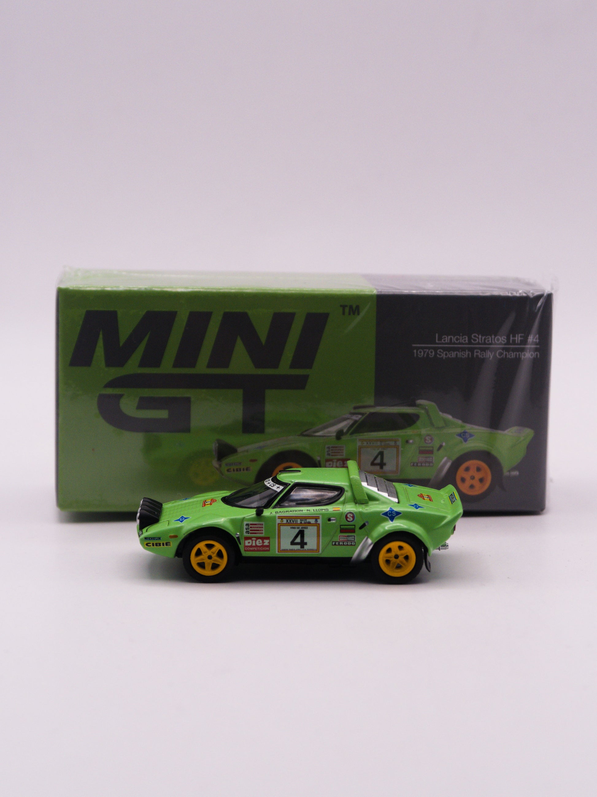 Mini GT #1050 Lancia Stratos HF #4 Spanish Rally Champion ZIelony